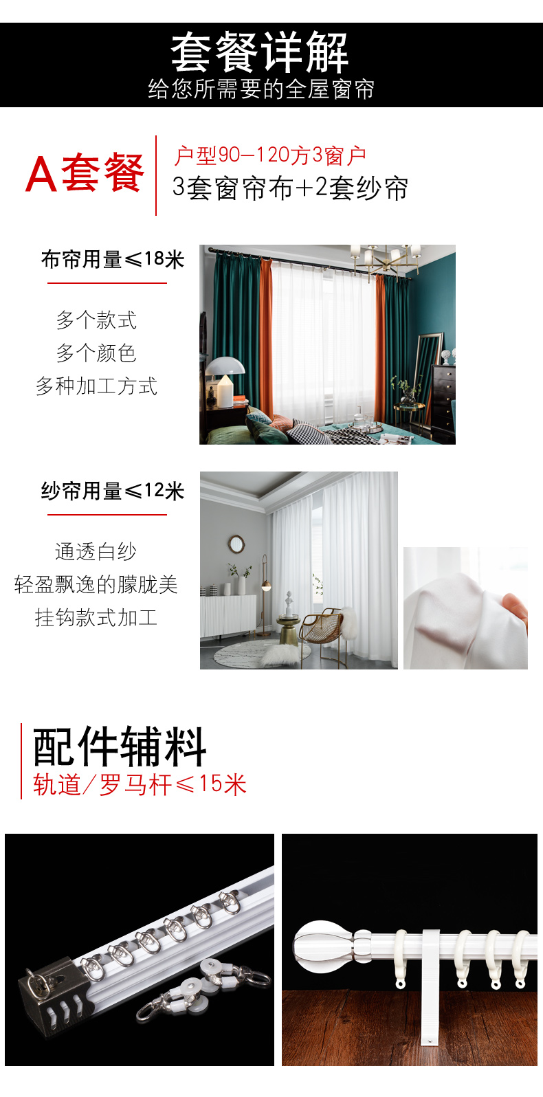 Easyfamilyカーテンセット全屋カスタムセットカーテン2021年新型簡約現代バッグ訪問測定設置全国三室一庁Aコース:3セットのカーテン+紗のカーテン二つ+セットレバーレール+測定取付け