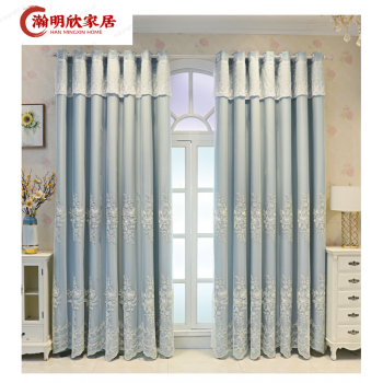 小米(MI)生态同款北欧加厚ファブリック生地刺繍カーテン纯色全遮光着地カーテンリビング寝室ベランダ飘窓ファブリック生地レース一体の天青ファブリック生地レース一体【フック加工】1.6幅2.0高さ一枚【改短备考】