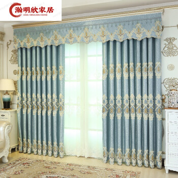 小米(MI)エコ同款カーテン2021年新型リビングヨーロッパ式刺繍カーテン大気简约现代寝室遮光ファブリック生地制品のグレーブルーファブリック生地カーテン(穴あけ加工)カスタマイズ1メートル幅*2.7高さ変更可