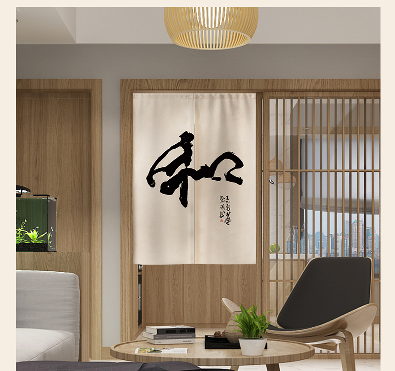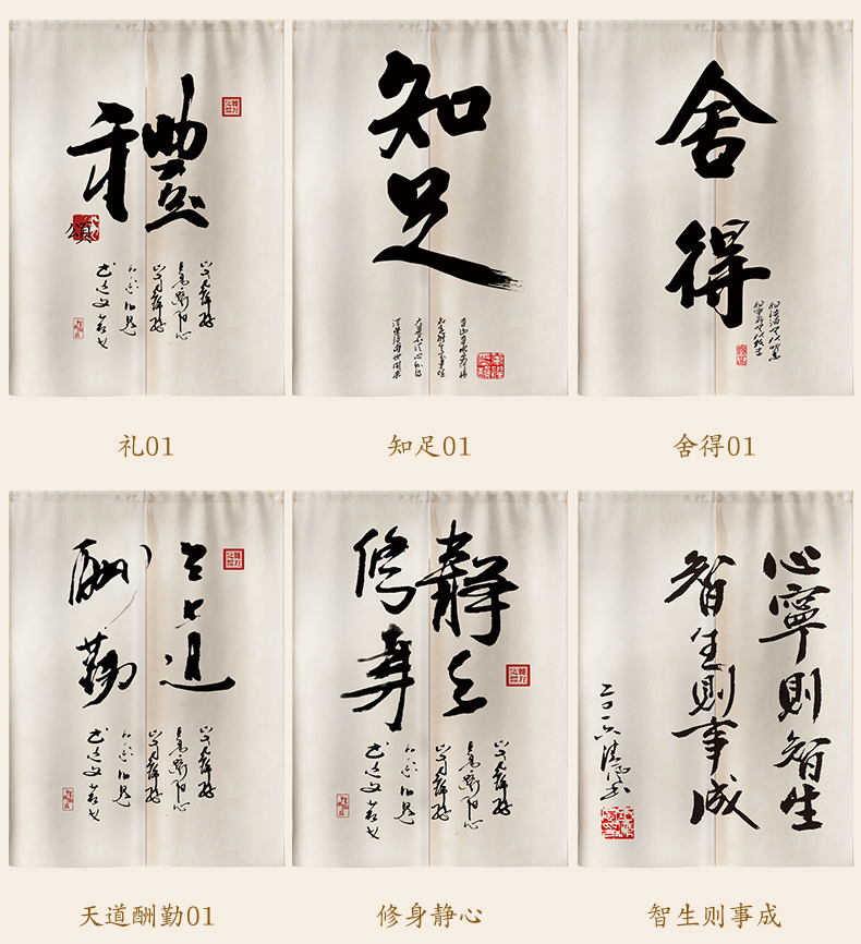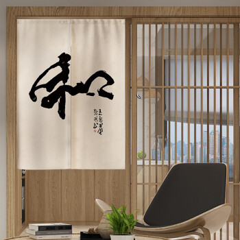 书法字画门帘中式隔断帘办公室书店书房商铺茶室包厢遮挡ファブリック生地帘家用玄关屏风挂ファブリック生地书柜书架防尘帘横帘订制魔术贴 宁静致远01 宽80*高100cm带杆 单面开缝