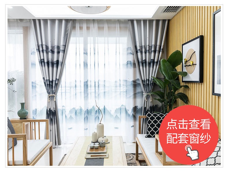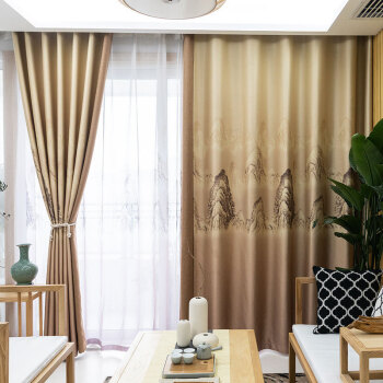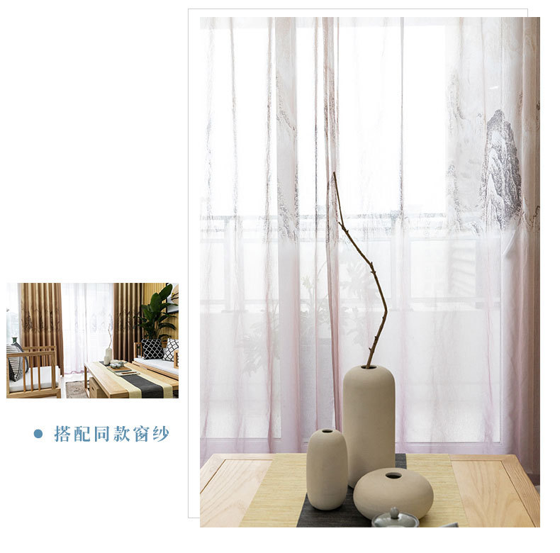 席韻の家紡の新型の中国式の現代簡単で簡単な水墨山水スタイルのプリントのカーテンの麻の布はプリントのカーテンの水墨山水-カレーの色をつづり合わせて注文して作らせます。幅1メートル*高さ2.7メートルの単価(4本の爪のフック)を高くします。