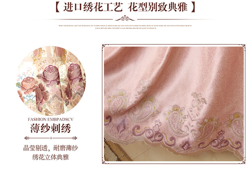 席韻の家紡のピンクの刺繍のカーテンの布の高精密な花の遮光の布のカーテンの窓の紗は同じ種類の窓のカーテンをカスタマイズして広く1メートル*高さの2.7メートルの単価(韓のしわの針)を注文して高くなることができます。