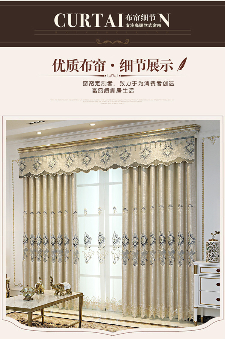 席韻の家紡のヨーロッパ式の客間の寝室の遮光の刺繍のカーテンの寝室の客間の室内は注文して万頃の瑠璃-ほこりの布を注文して広く1メートル*高さの2.7メートルの単価(韓のしわの針)を注文して高くなることができます