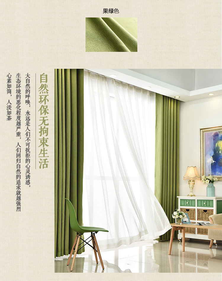 北欧の全遮光を加え、綿麻のカーテンを模した純色で簡単に仕上げました。現代のリビングルームにカーテンが付いています。-果物の緑色の1メートルの材料の価格(フック/穴あけは無料で加工します。何メートルで何枚か撮りますか?